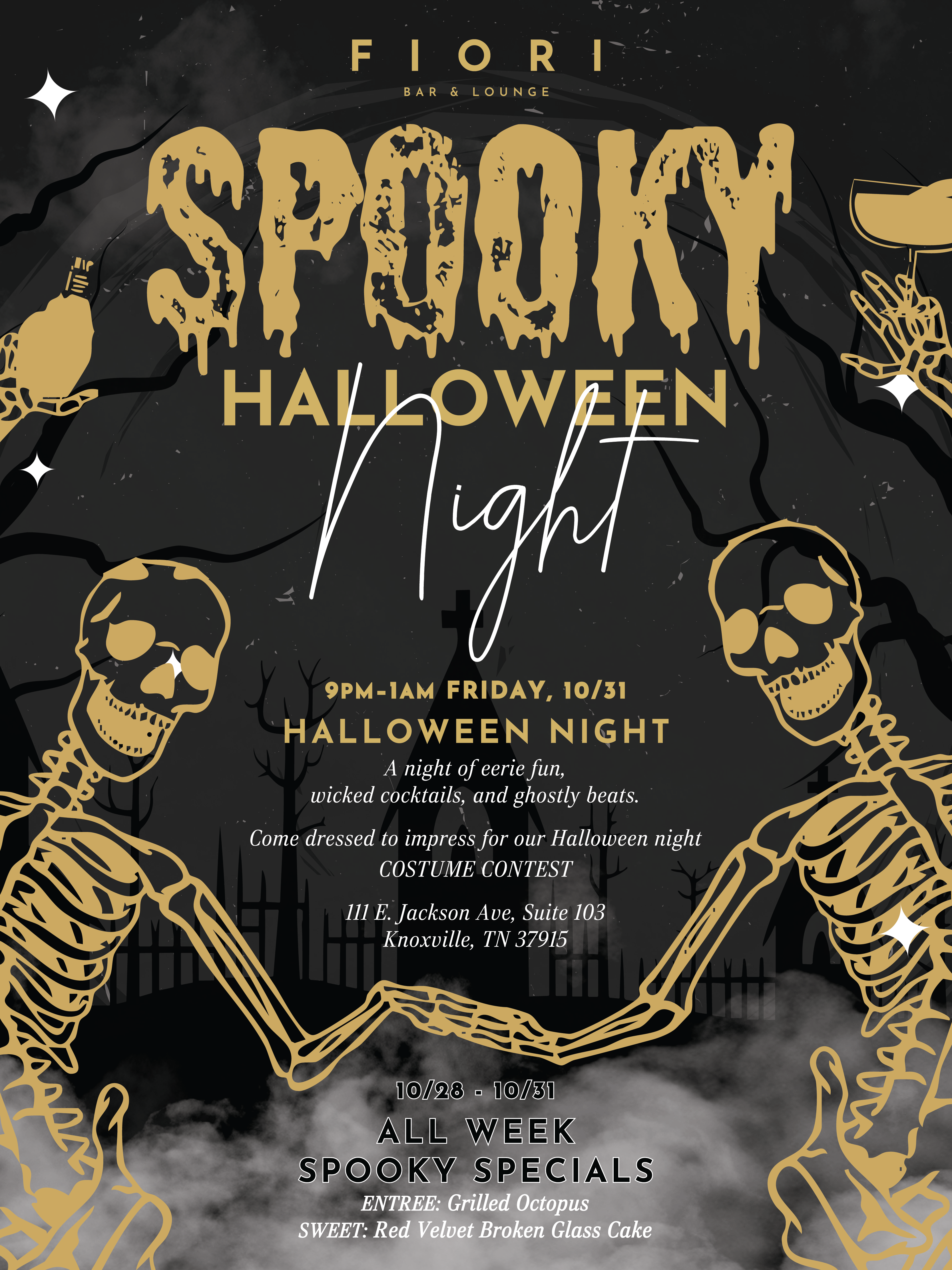 👉 And don’t forget to swing by tomorrow night dressed to the nines for spooky cocktails and a costume contest!